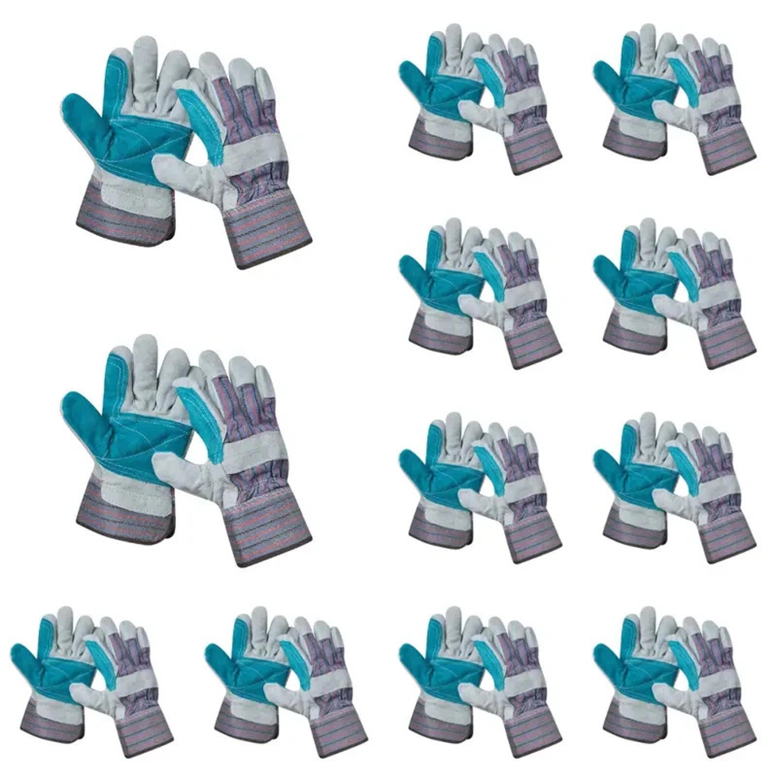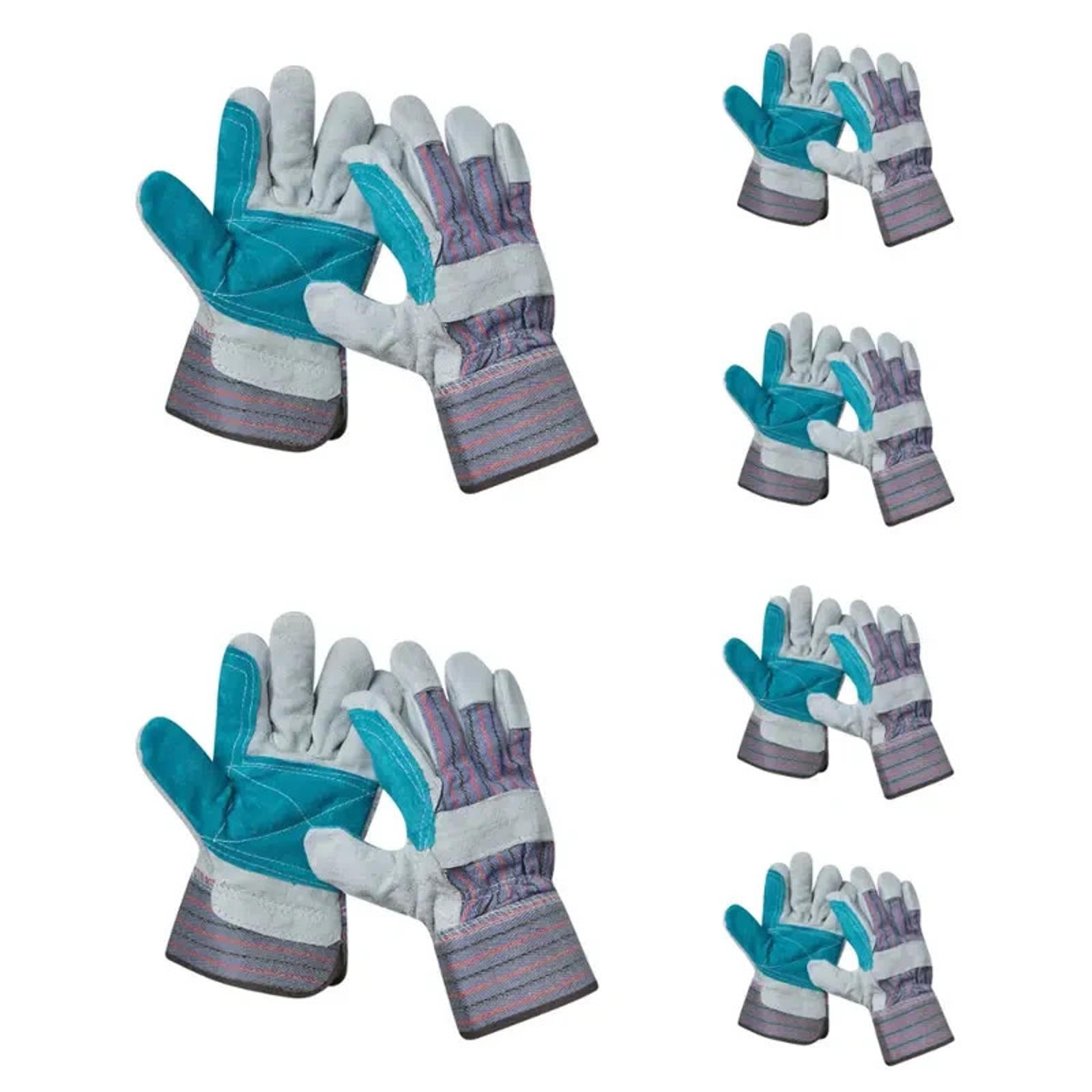 3 Pairs Split Leather Palm Work Heavy Duty Safety Construction Garden Gloves