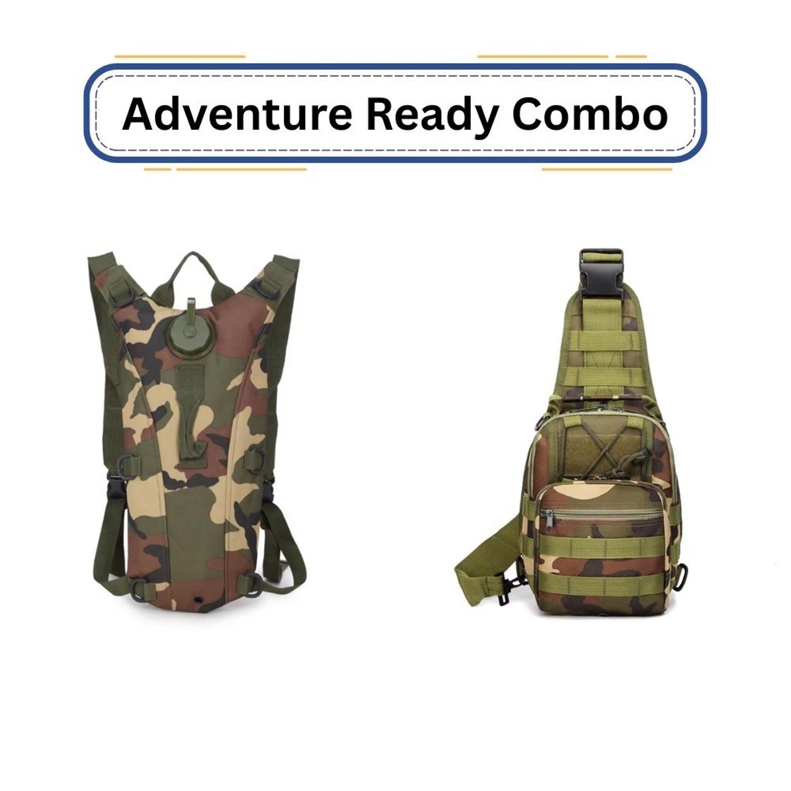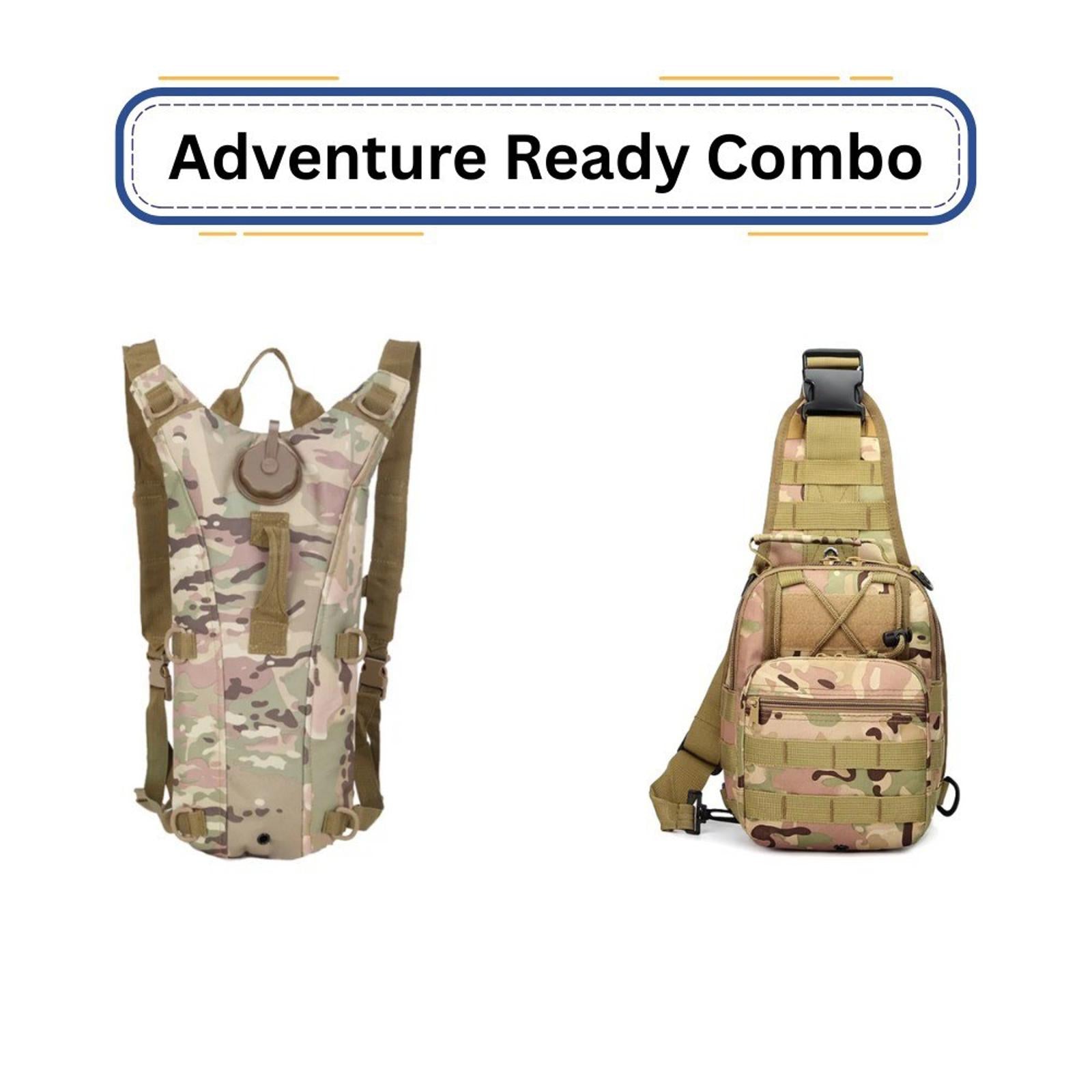Stay prepared on every adventure with the Adventure Ready Combo – a tactical sling bag paired with a hydration pack for ultimate convenience and performance. Available in multiple camo and solid colors, this combo is perfect for hiking, biking, camping, and outdoor travel.