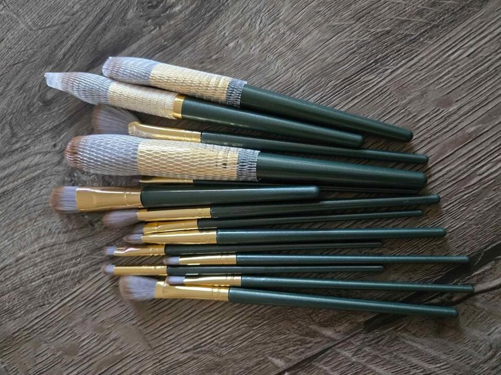 Luxurious 14pcs Makeup Brush Set - Plush, Green Professional Brushes for Full Face & Eye Detailing - Ideal for Foundation, Contouring & Blending