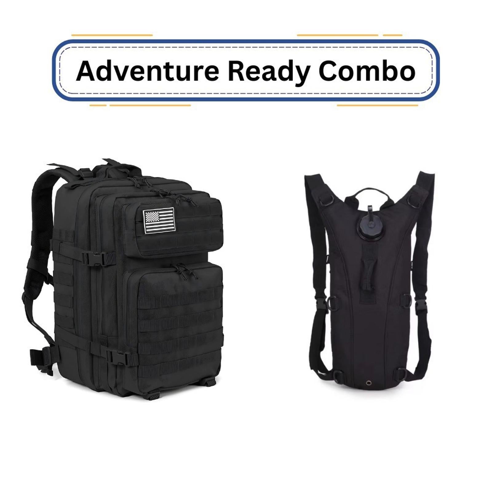 Upgrade your outdoor adventures with this Adventure Ready Combo – a rugged tactical backpack paired with a hydration pack, designed for durability and performance.